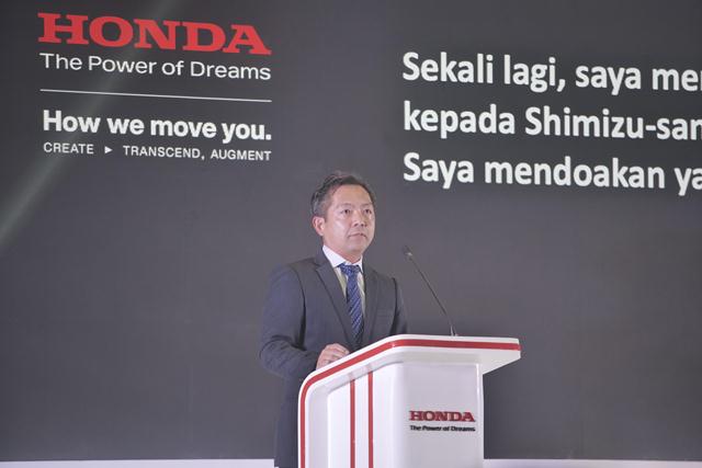 Dalam pidatonya, Shimizu mengatakan, “Ketika pertama kali bertugas di Indonesia sebagai bagian dari HPM, saya merasa bersemangat karena saya percaya Indonesia adalah salah satu pasar Honda yang memiliki potensi besar dan penuh dengan tantangan. Sayangnya, saya tiba disini pada saat transisi dari pandemi. Namun, saya bersyukur atas dukungan dari teman-teman media juga, Honda mampu melewati masa-masa sulit ini”.