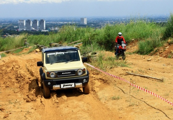otomampir.com – PT Suzuki Indomobil Sales (SIS) mengajak media untuk melakukan test drive Suzuki Jimny 5 door dan motor Suzuki V- Strom 250SX. Media Test Drive Experience kali ini, dilakukan di Desa Pelangi Sentul Kabupaten Bogor, Jawa Barat. Melihat lokasinya dirasa cukup representatif dengan konsep kegiatan outdoor sebagai salah satu medan yang sesuai dengan Jimny 5-door dan V-Strom 250SX. Dengan jalur trek offroad sejauh 1,4 km untuk mencoba pengalaman berkendara langsung dengan Jimny 5-door serta area test ride untuk menjajal kegagahan V-Strom 250SX, peserta dapat merasakan berbagai macam medan jalan mulai dari tanjakan, jalanan berbatu, medan dengan tanah gembur, aliran air, dan lain sebagainya.