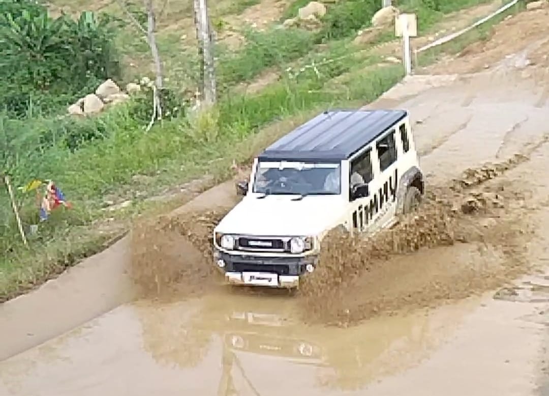 Terbukti saat melintasi medan off road di Desa Pelangi, yang berbatu, tanah becek yang licin dan kubangan air Jimny 5 door dengan mudah melintasi medan off road tersebut. Penggunaan tuas ke posisi 4L diperlukan ketika berhadapan dengan medan yang lebih berat seperti lumpur, bebatuan, atau kondisi lainnya yang benar-benar membutuhkan traksi agar bisa lolos dari tantangan dengan lebih mudah.