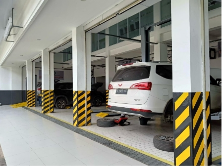 Tak hanya menghadirkan layanan penjualan, dealer ini didukung oleh fasilitas servis yang mumpuni untuk memastikan pengalaman pelanggan yang optimal. Area servis yang luas memungkinkan diler ini melayani berbagai kebutuhan perawatan kendaraan dengan lebih efisien. Dengan 5 car stall dalam service bay serta kapasitas unit entry service hingga 15 kendaraan per hari, dealer ini siap menangani berbagai jenis perawatan dan perbaikan kendaraan pelanggan. Selain itu, area penyimpanan suku cadang seluas 84 meter persegi memastikan ketersediaan komponen asli Wuling, sehingga pelanggan dapat menikmati layanan purna jual yang cepat dan berkualitas tanpa perlu khawatir mengenai ketersediaan spare parts.