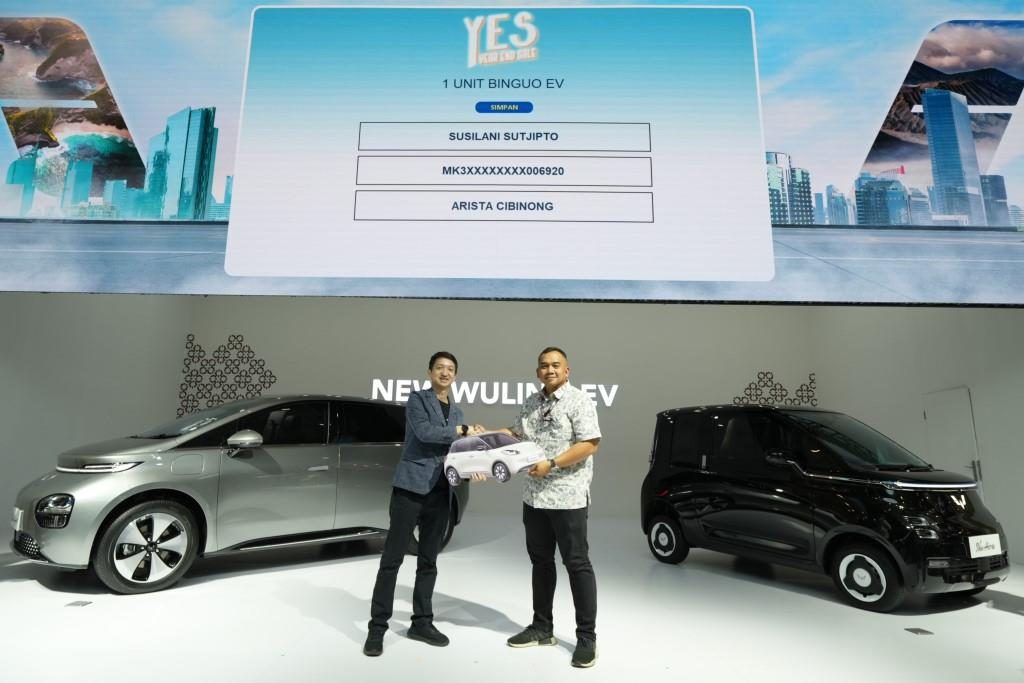 Dalam undian Grand Prize YES 2024, dua konsumen yang beruntung memenangkan hadiah istimewa dari Wuling. Salah satu pemenang, Susilani Sutjipto, berhak membawa pulang satu unit Wuling BinguoEV, sementara pemenang lainnya, Arlina Imama Addiani, mendapatkan kesempatan untuk memiliki BinguoEV dengan diskon sebesar 50%.